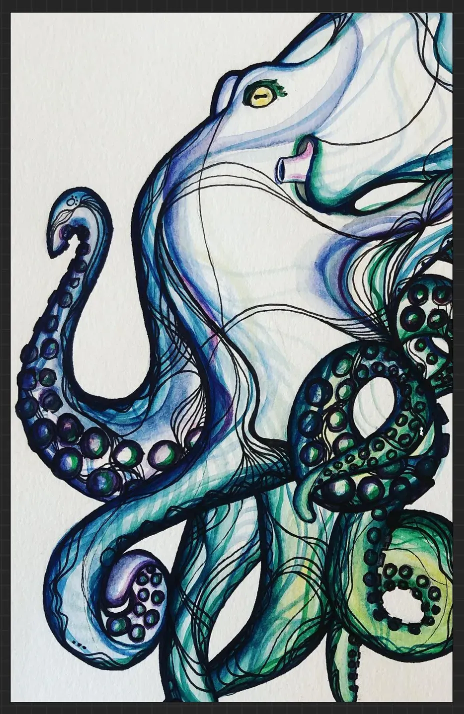Creating is my lifeblood. I’ve been a full-time artist since 2018, producing work shown internationally and selected for numerous murals, exhibitions, and collaborations. Teaching and creating feed into one another - my art informs my classes, and my classes inspire my art. My style combines fluid watercolor with structured lines, resulting in pieces that invite insight and connection.